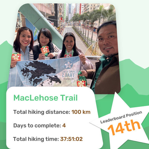 At 100km, The MacLehose Trail is Hong Kong's longest trail. See our table below for a recommended day plan. Remember with Trail Challenger you can do it over many more or fewer days. There is no limit.